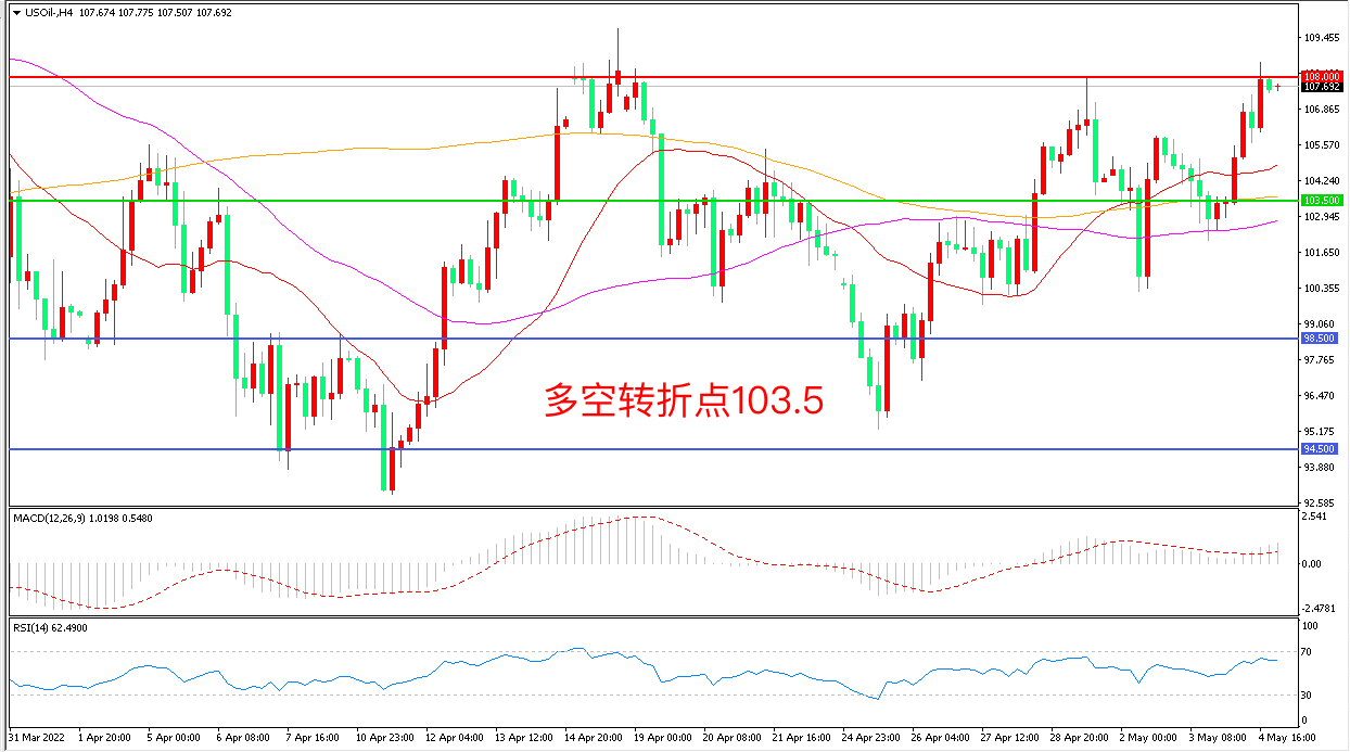 交易策略:在103.50之上看涨,目标105.50           108.00