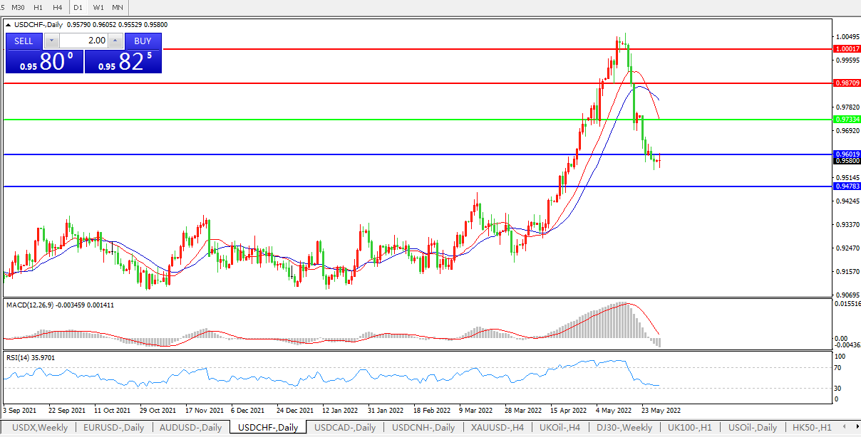 美元兑瑞郎USDCHF 日线图: