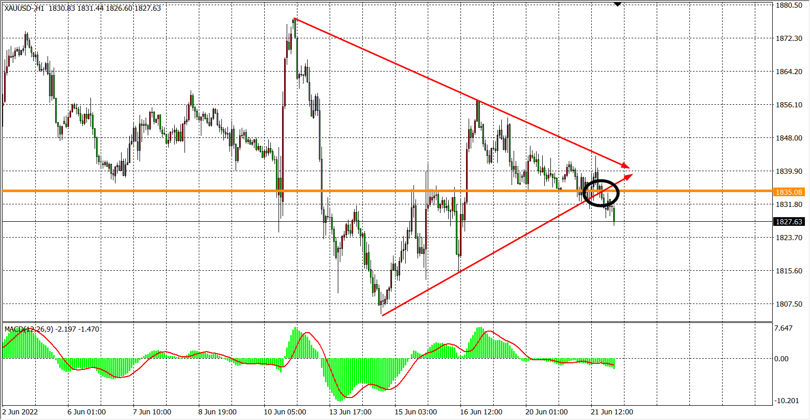 交易策略:在1835.00之下看跌,目标1820.00 1805.00