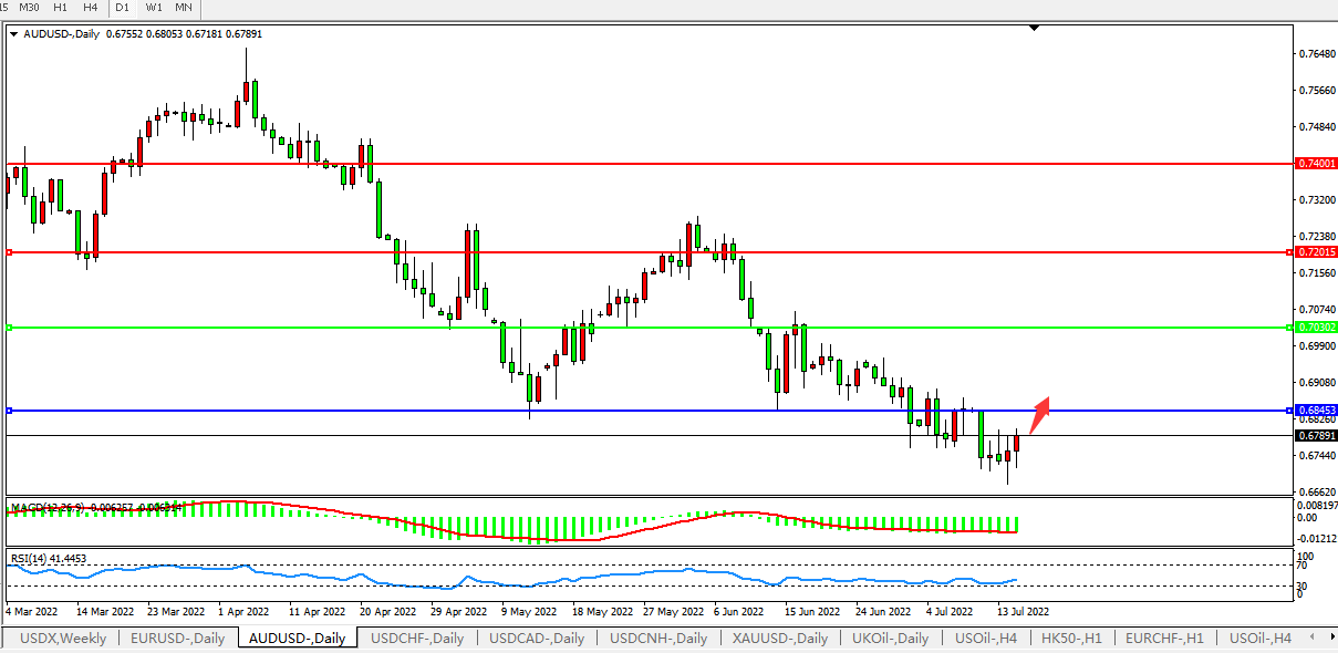 澳元兑美元叠床2020年6月初以来新低至0.6680,目前交投于0.6750附近。澳大利亚6月份失业率跌至48年来最低点,而创纪录的职位空缺表明劳动力市场将进一步收紧。