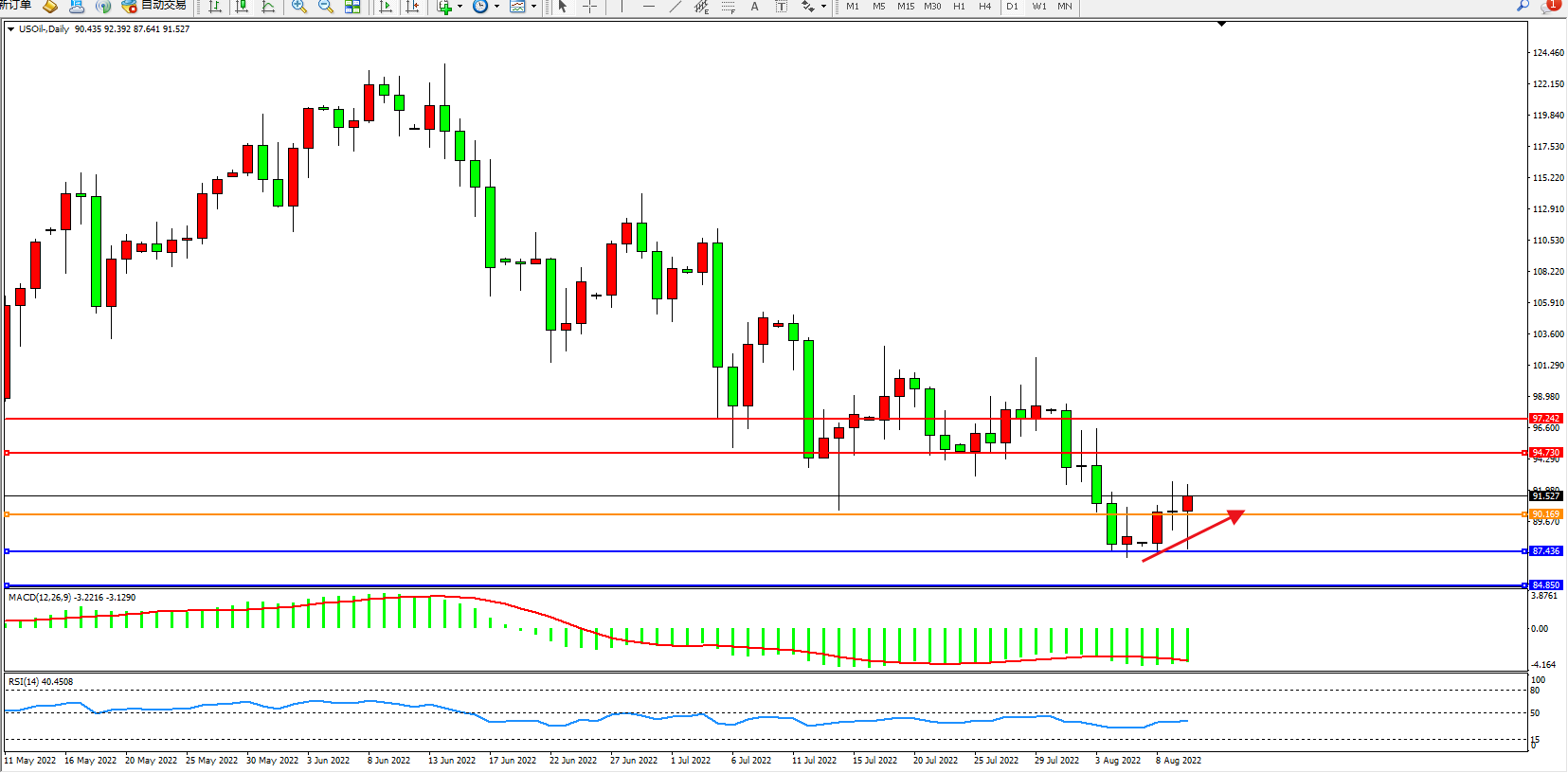 美油:低位弱势整理上移 USOil   UKOil