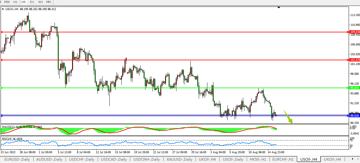 美国原油USOil   4小时图
