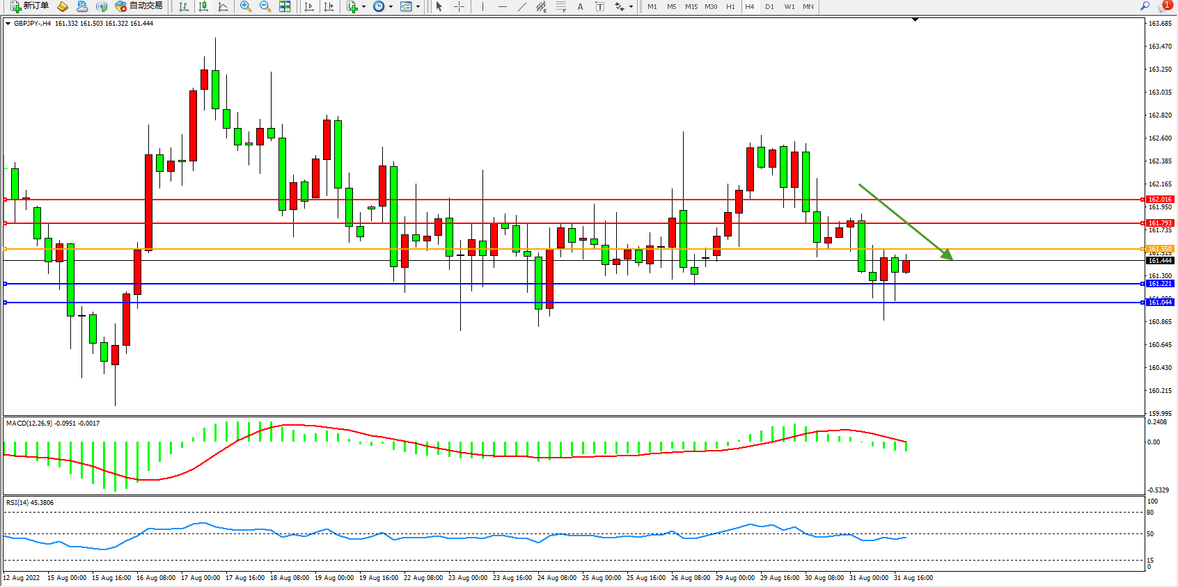 支撑位:161.221、161.044