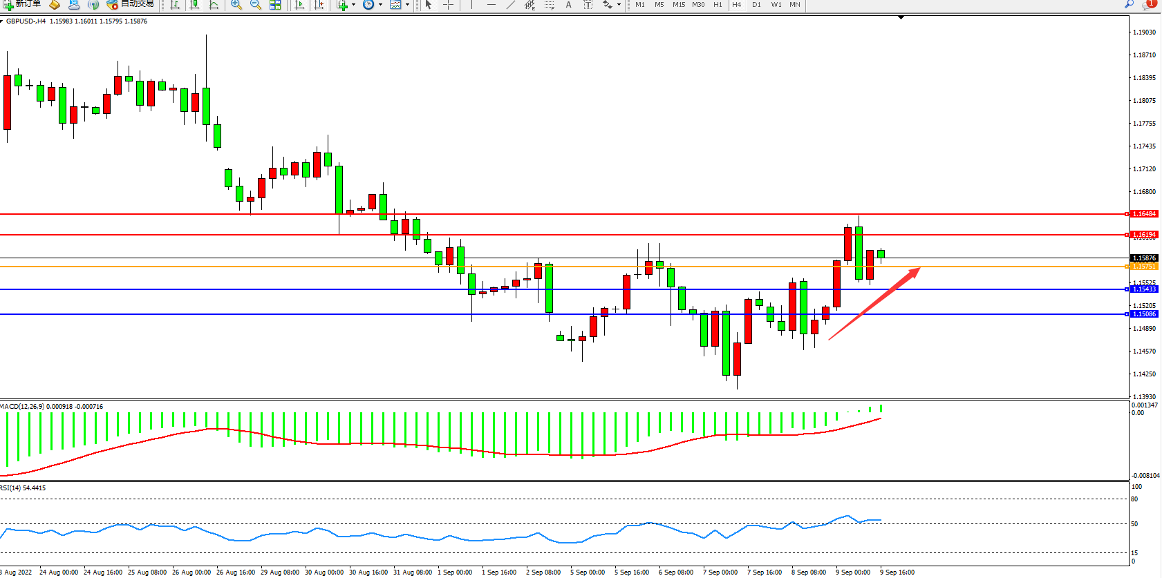 英镑美元GBPUSD ——4小时K线图显示: