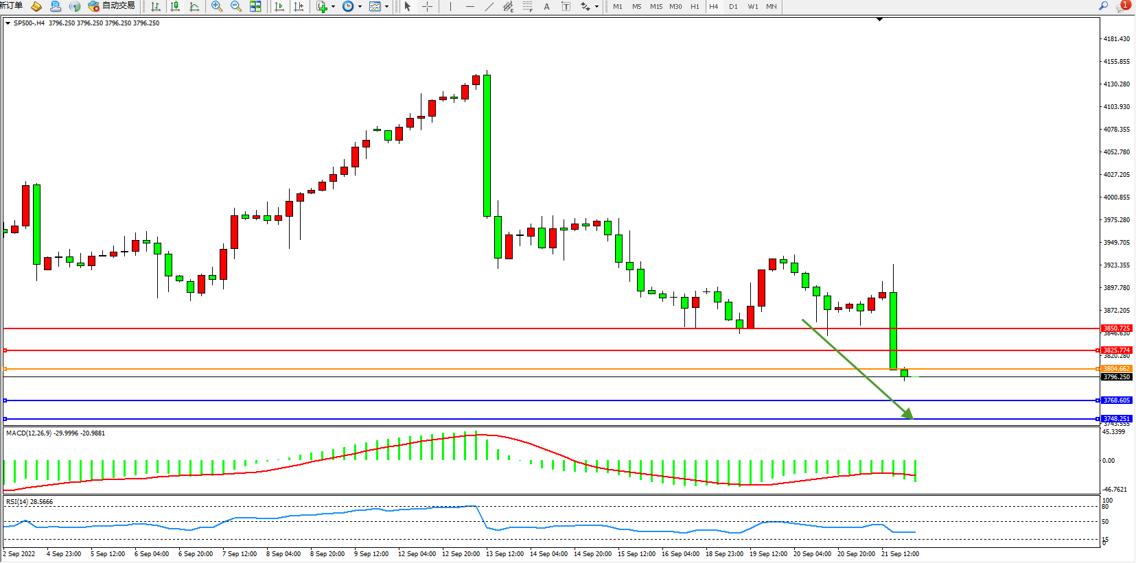 标普SP500——4小时K线图显示: