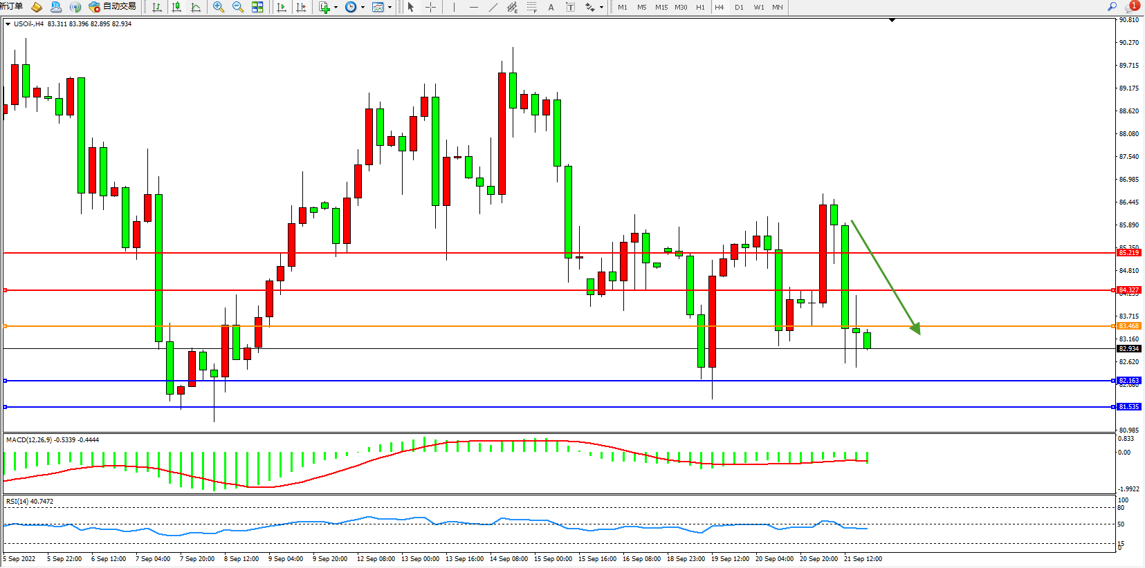 交易策略:83.468下方看跌,目标82.163、81.535