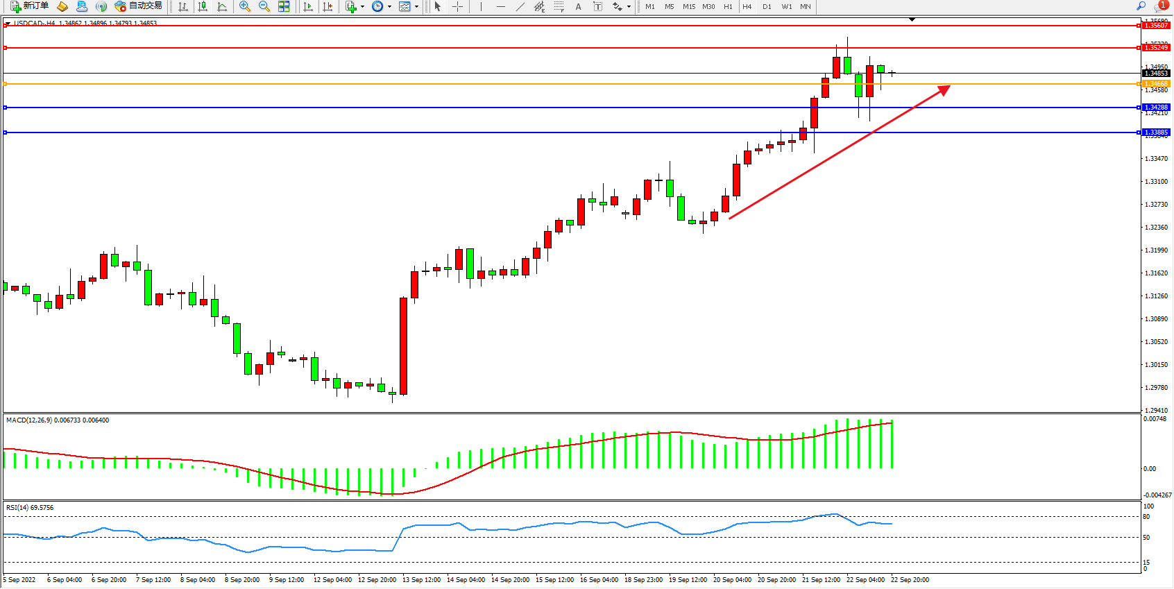 4小时图看:多头动力持续震荡上扬,短期看涨情绪良好,市场高位维持宽幅震荡,MACD指标处于多头区域高位整理,RSI指标处于多头区域维持徘徊;
