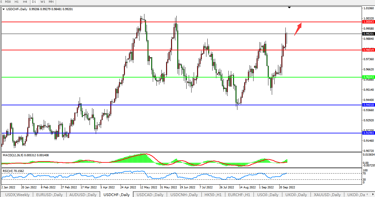 美元兑瑞郎USDCHF 日线图