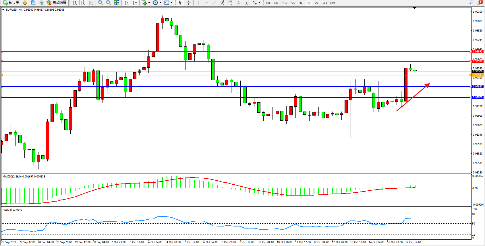 交易策略:0.98183上方看涨,目标0.98597、0.98890