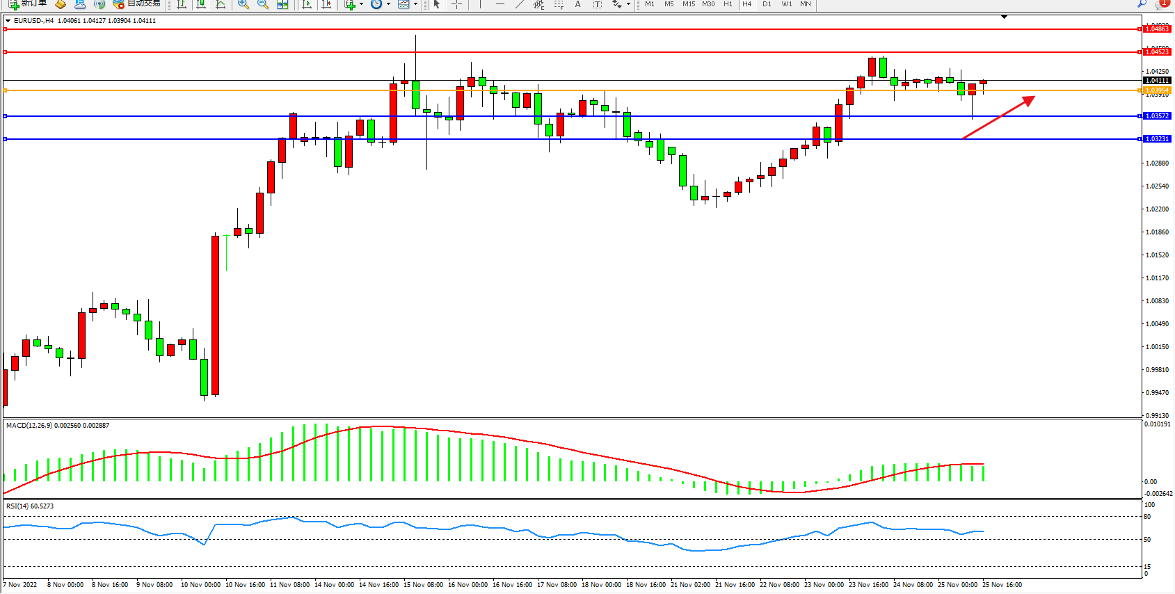 交易策略:1.03954上方看涨,目标1.04523、1.04863