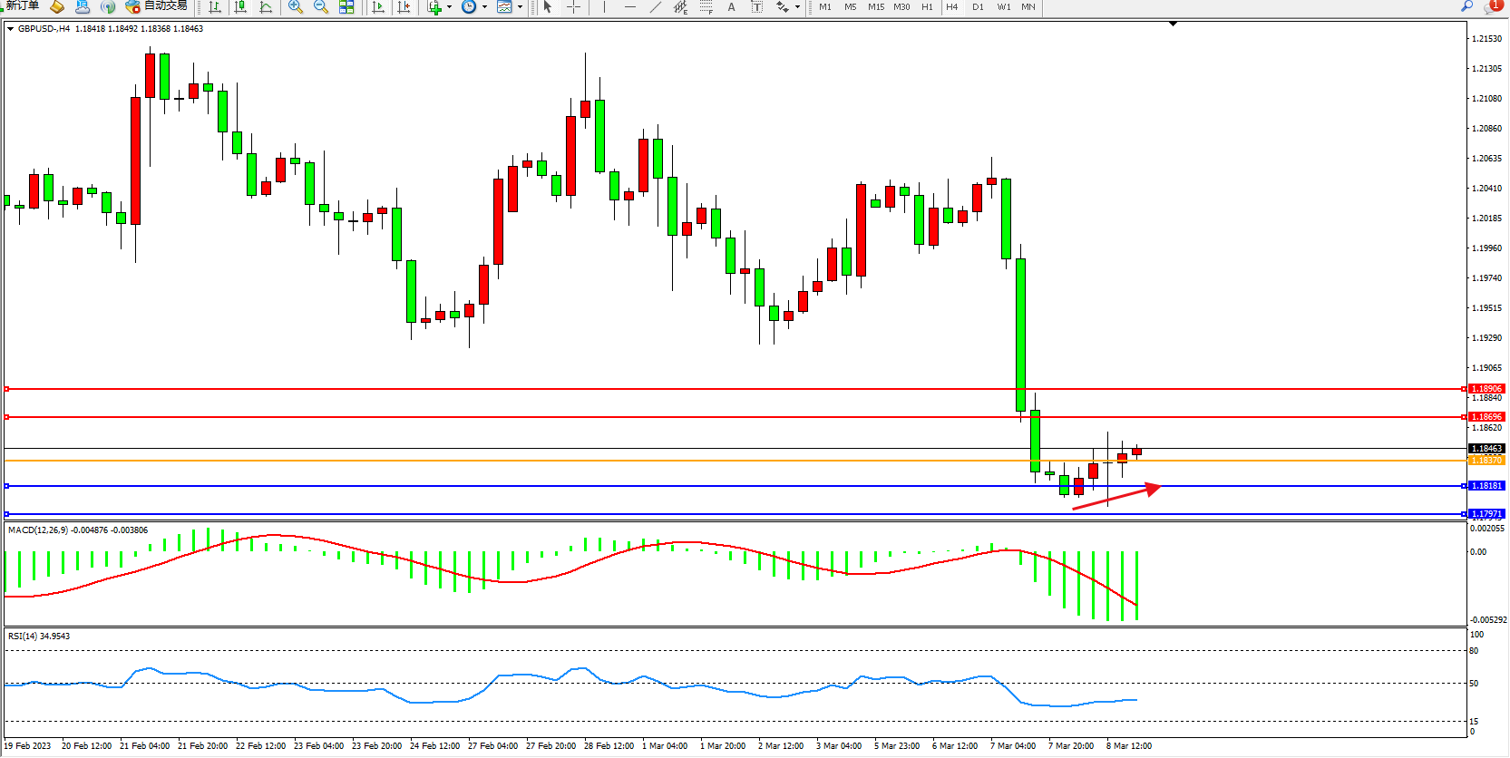 英镑美元GBPUSD ——4小时K线图显示: