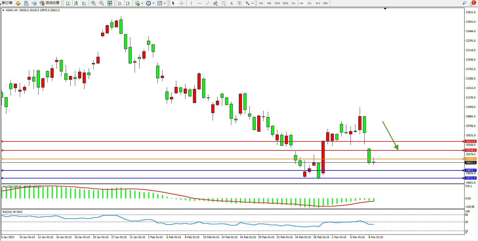 香港恒生指数3月8日(周三)收盘下跌483.23点,跌幅2.35%,报20051.25点;美联储加息预期急剧升温,金融风险资产承压。港股全天维持大跌行情,恒生科技指数跌3.23%,恒指、恒指分别跌2.35%和2.68%,恒指险守2万点大关。盘面上,大型科技股集体下挫,南下资金大幅净流入87.95亿港元,大市成交额为1174亿港元。