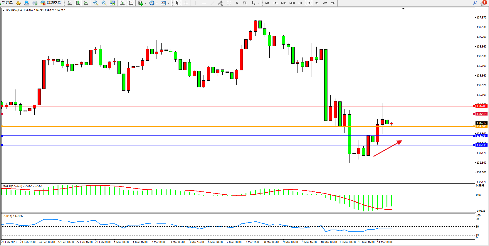支撑位:133.764 133.439