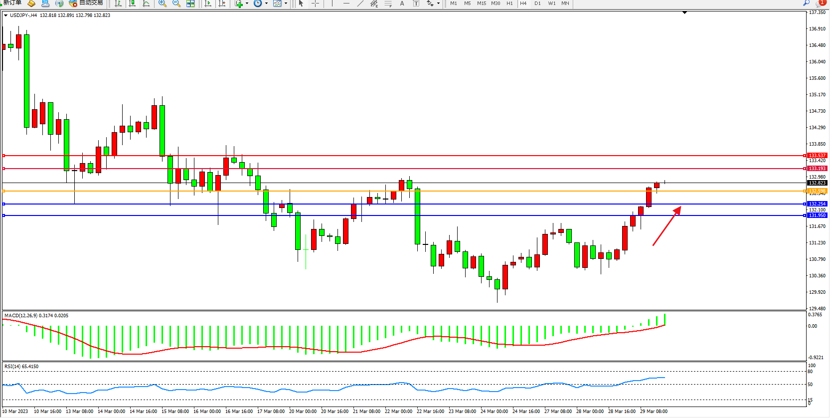 阻力位:133.193  133.537