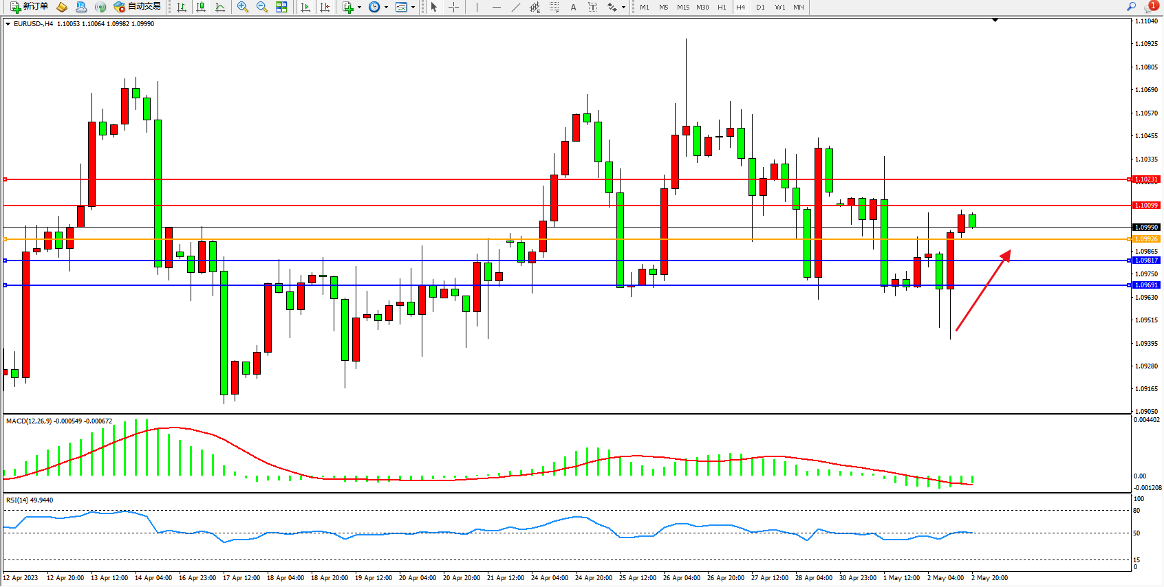 交易策略:1.09926上方看涨,目标1.10099 1.10231