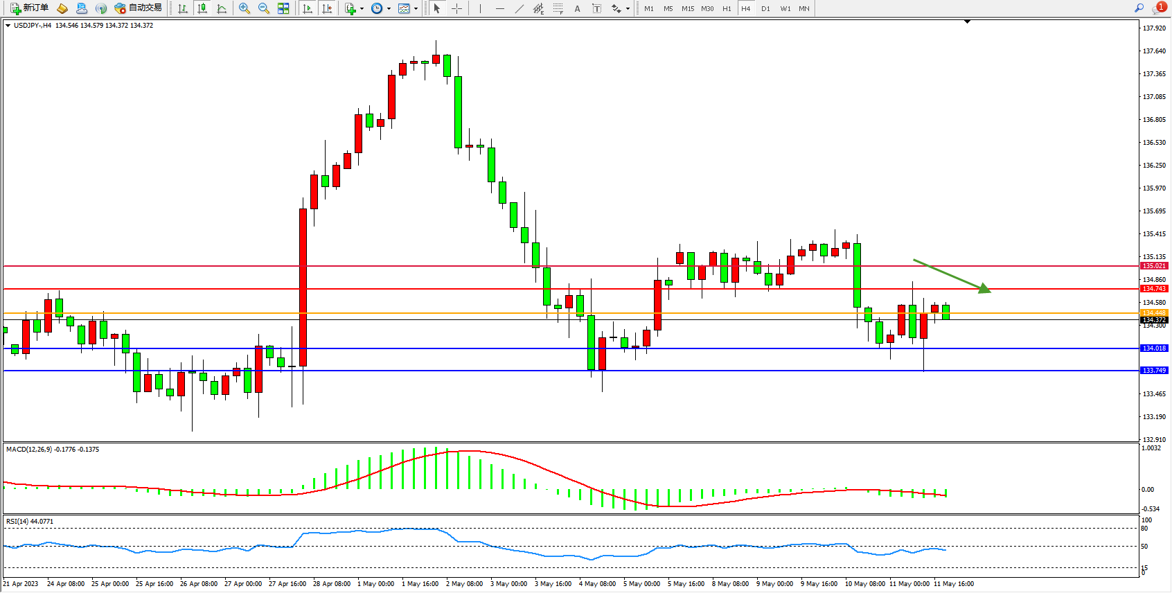 支撑位:134.018 133.749