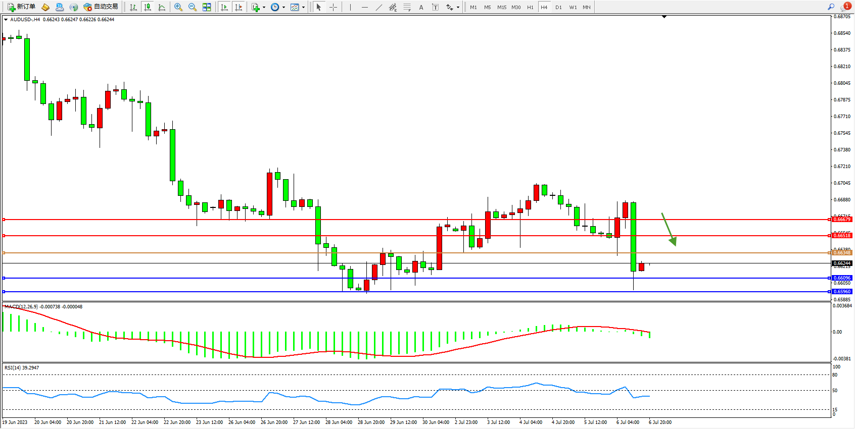 交易策略:0.66348下方看跌,目标0.66096 0.65960