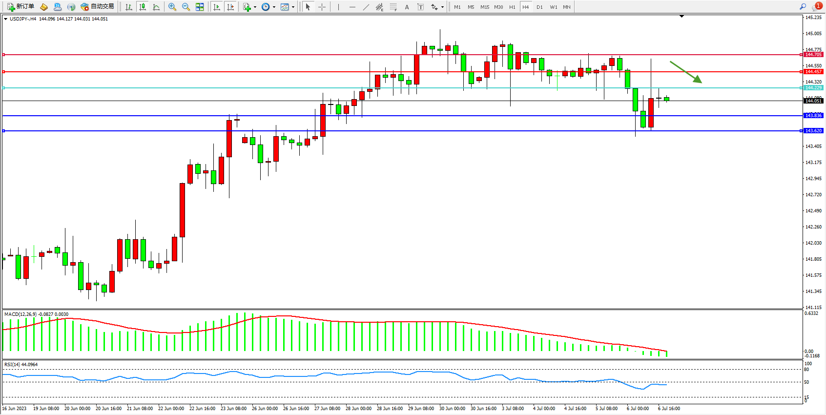 阻力位:144.457 144.705