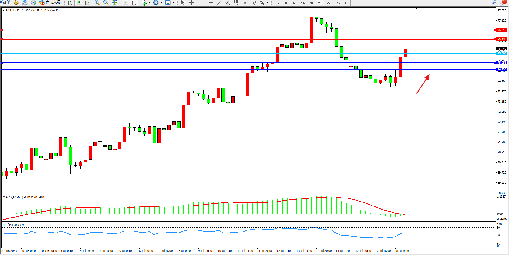 支撑位:75.058 74.730