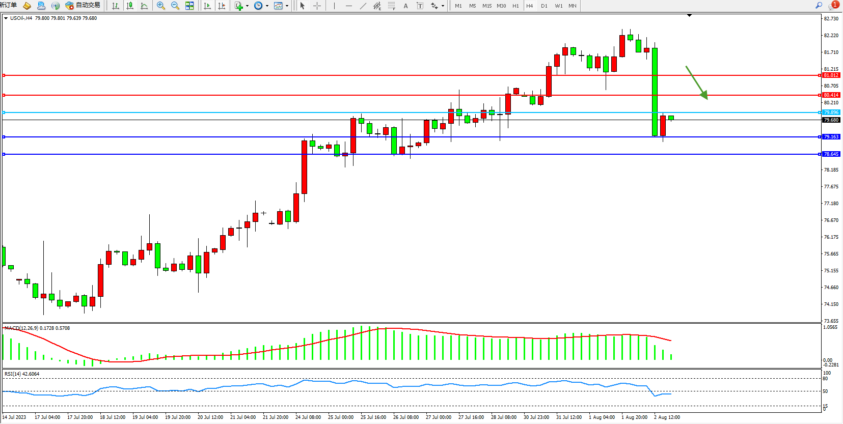 原油维持79.680附近震荡,美国EIA原油库存骤降1704.9万桶,创历史最大单周降幅,预期下降105万桶,前值下降60万桶。