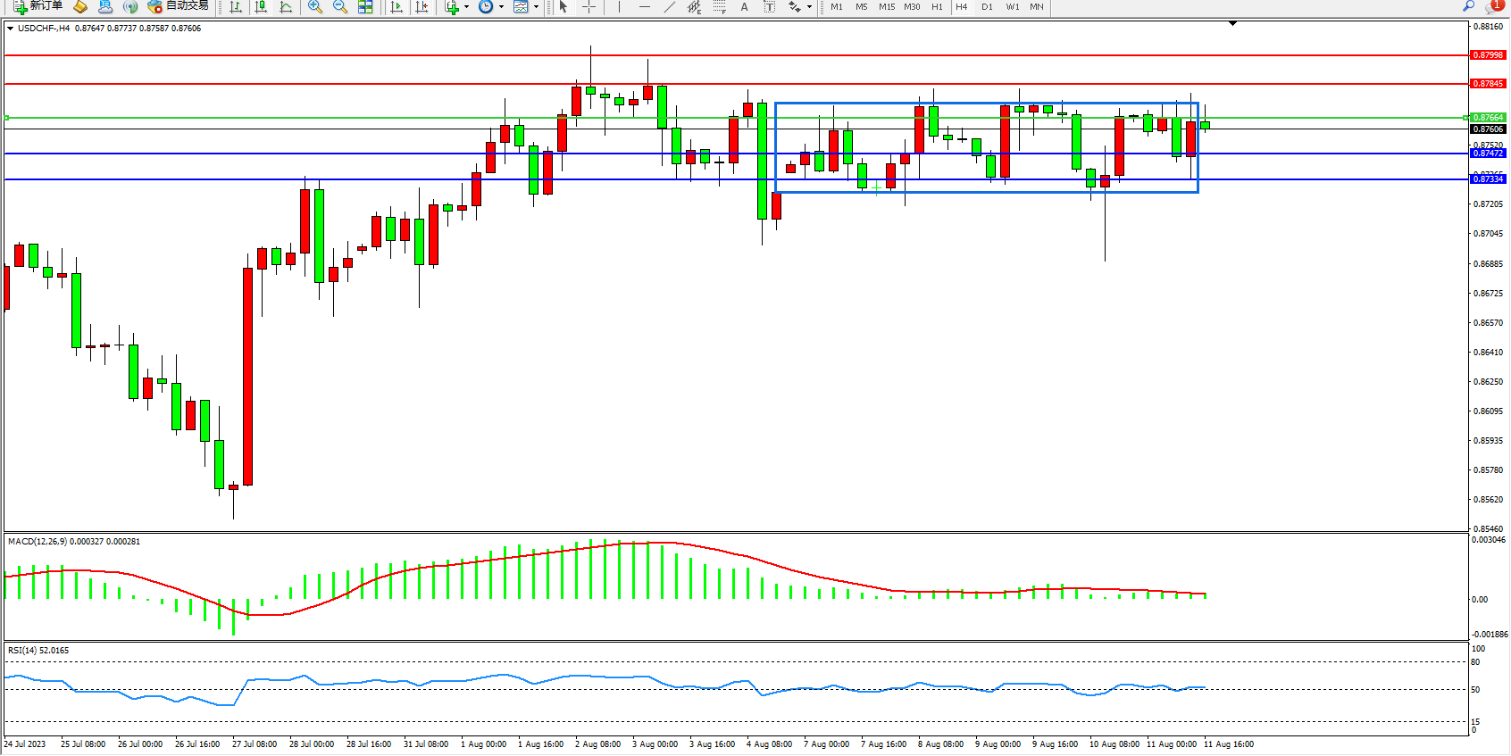 美元瑞郎USDCHF——4小时K线图显示: