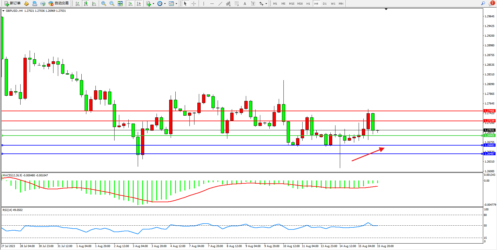 英镑美元GBPUSD ——4小时K线图显示: