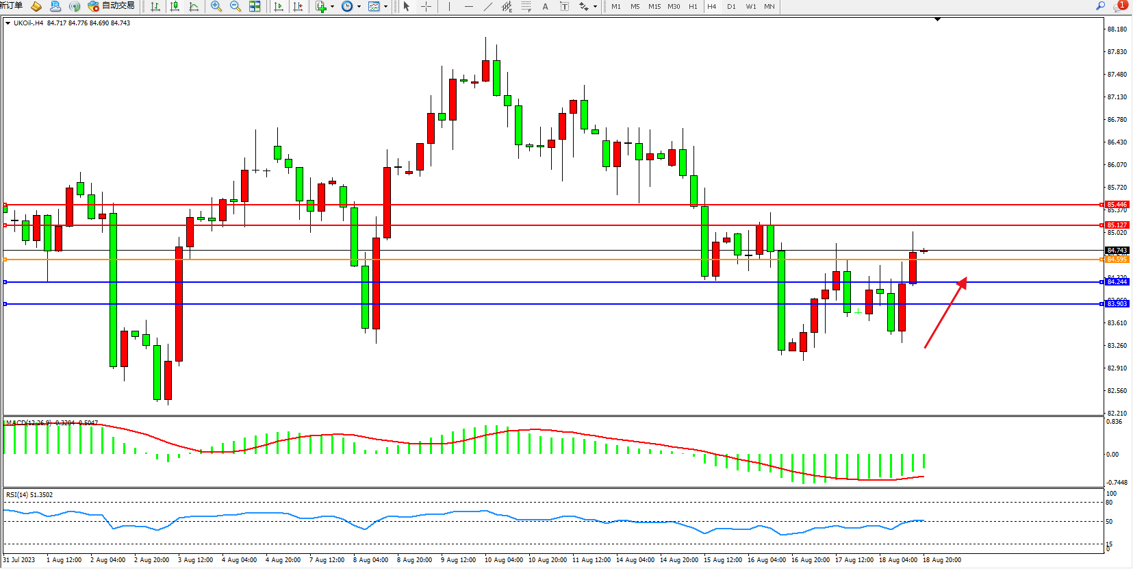 布油UKOil——4小时K线图显示: