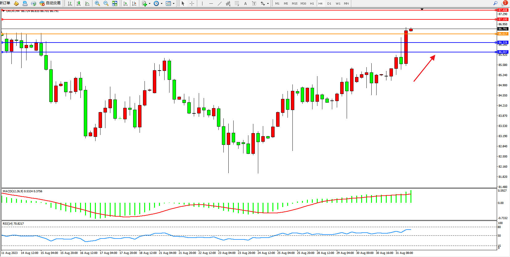 布油UKOil——4小时K线图显示: