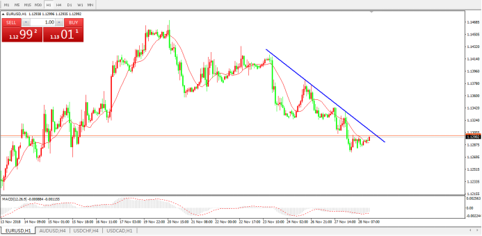 英国脱欧协商的不确定性及特雷莎·梅政府面临挑战,意大利预算纷争的持续,欧元区经济数据表现疲软,及中美贸易疑虑再现均施压汇价。