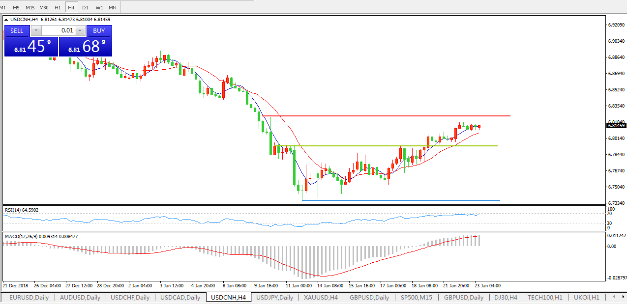 交易策略: 在6.7895之上,看涨,目标价位为6.8244,然后为6.8550。