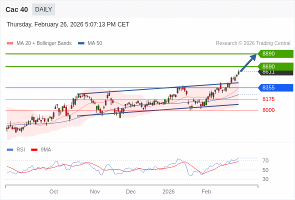 Cac 40 短线: 看涨。