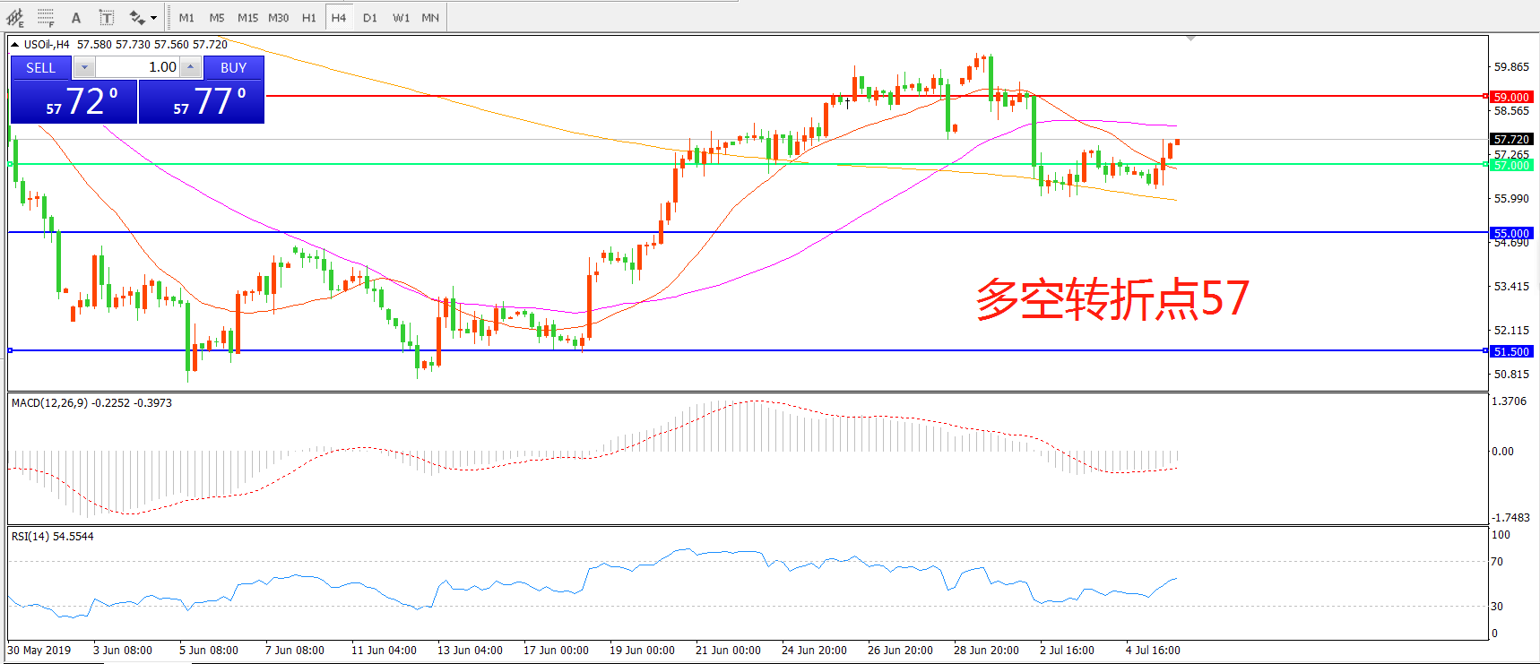 多空转折点:57.00