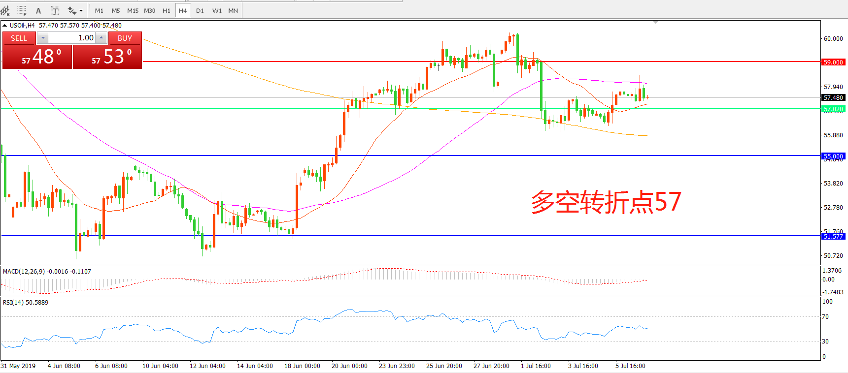 多空转折点:57.00