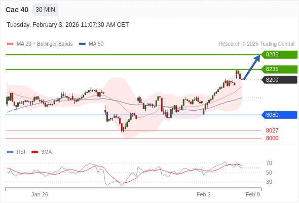 Cac 40 当日内: 期待8235。
