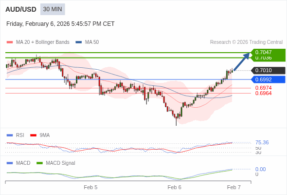 替代方案: 在0.6992以下,期待0.6974和0.6964。