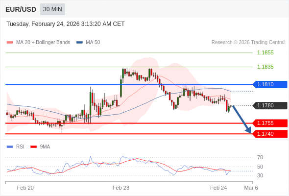 在 1.1810 之下,看跌,目标价位为 1.1755 ,然后为 1.1740 。