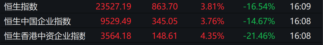 此外港股市场延续暴涨,恒生指数盘中一度涨超4%。截至当日收盘,恒指收涨3.81%,石油股涨幅居前,中海油、中石油涨逾7%,中石化涨逾6%。内房股持续反弹,中国恒大涨逾20%。
