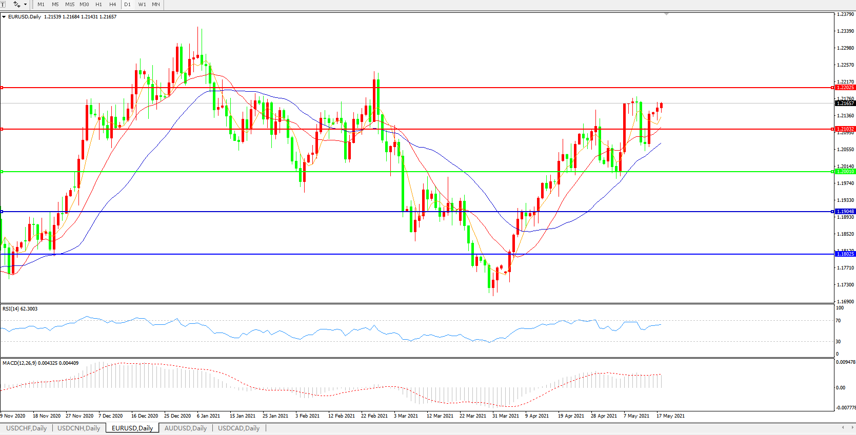 欧元兑美元EURUSD 日线图: