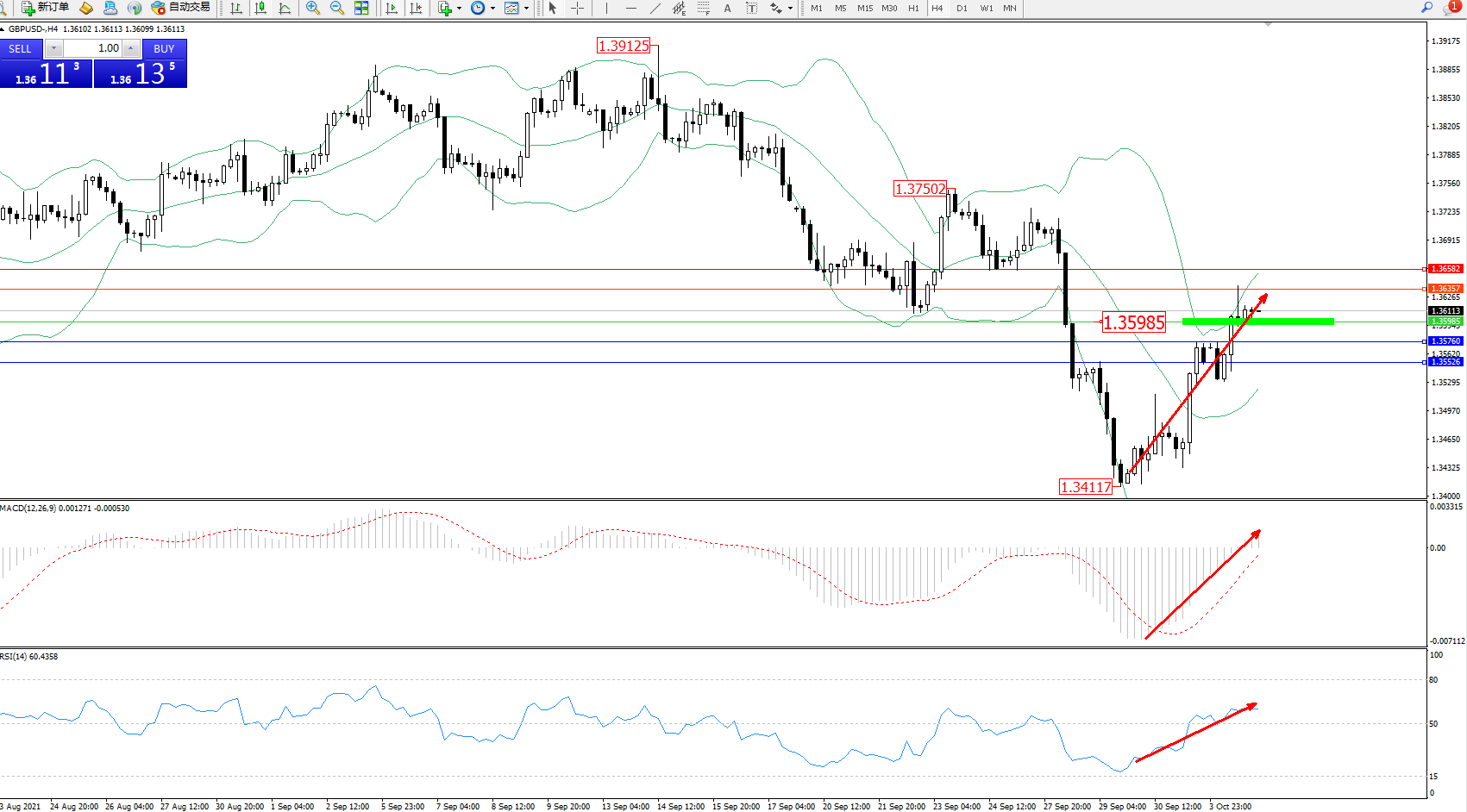 交易策略:1.35985上方看涨,目标1.36357、1.36852