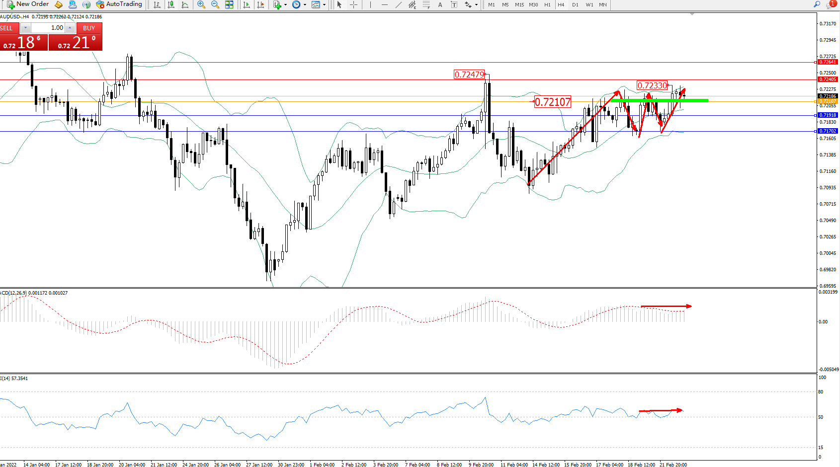 备选策略:0.72107下方看跌,目标0.71918、0.71702
