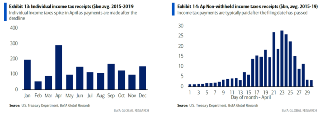 根据美银的数据来看,截至4月11日,美国政府个人所得税税收同比下降了14%,美银分析师Cabana解释称: