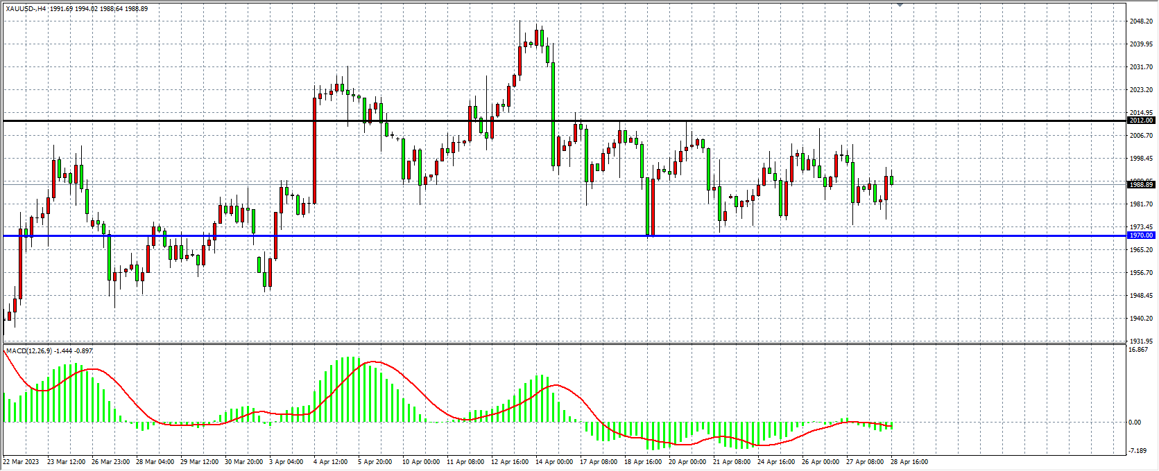 周五(4月28日)美国经济分析局称,以PCE物价指数衡量,美国3月份的通货膨胀率从2月份的5.1%降至4.2%,美债收益率盘中掉头向下,金价小幅反弹,但仍难以实现较大幅度的涨势,在美联储货币政策前市场总体观望情绪浓厚。展望后市,本周经陆续公布非农、FOMC利率决议等重大风险事件,是充满机遇的一周。
